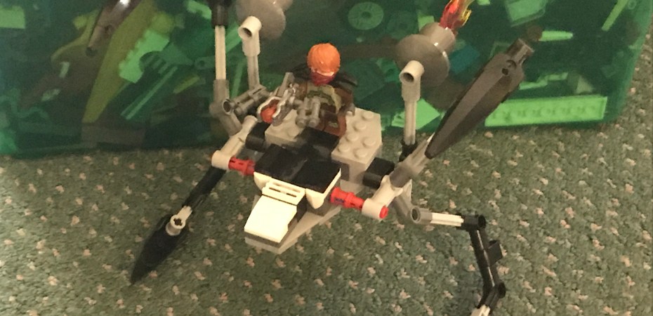 I make most of my Lego designs about my fictional character Thenor, his friends and their world. I usually grab from the bottom of my bins and pull out a strange piece and then add to it. The Spider Speeder Ship below began with the upper left leg piece.